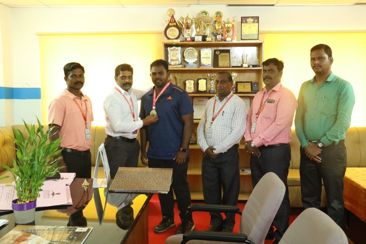 வென்றுள்ளார். 370கிலோ வ ளு தூக்கு ம் பிரிவில் வெண்கல பதக்கமும் , 290கிலோ மற்றும் 750கிலோ என ஒட்டு மொத்த பதக்கப் பிரிவில் தங்கப் பதக்கத்தை வென்றுள்ளார். இவரது வெற்றியை கல்லூரியின் தாளாளர் முனைவர் ஜெ. அரவிந்த்ன் , கல்லூரி முதல்வர் முனைவர். விமலானந்த்,துணை முதல்வர். முனைவர். ஜனார்த்தனன், உடற்கல்வி இயக்குனர் திரு. மோகன், துறைத்தலைவர் திரு நேத் ர பிரகாஷ் ஆகியோர் பாராட்டினர்.