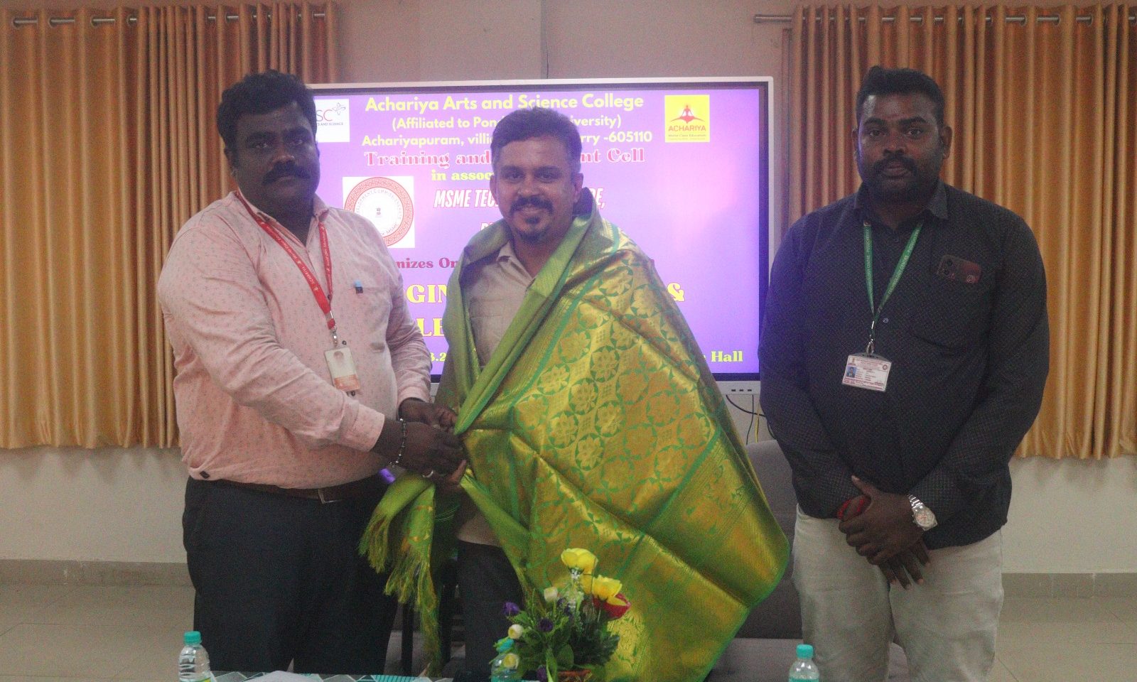 The Mangement Development Program (MDP) organized by MSME in collaboration with Achariya Arts and Science College successfully completed two sessions on March 3rd and 4th, 2025. The event focused on academic networking, global collaborations, and industry partnerships, benefitting faculty members.
