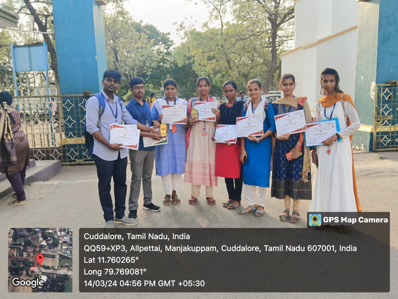 We are delighted to inform you that on 14th March 2024 , Our students participated in the National level Technical symposium *Compein 2k24* – organized by St.Joseph college ofArts and Science – PG and Research Department of Computer Science. Students from I BCA *Mr. Gokul and Mr. Aaron Raj* won *first place* in the *Technical Quiz event* .
