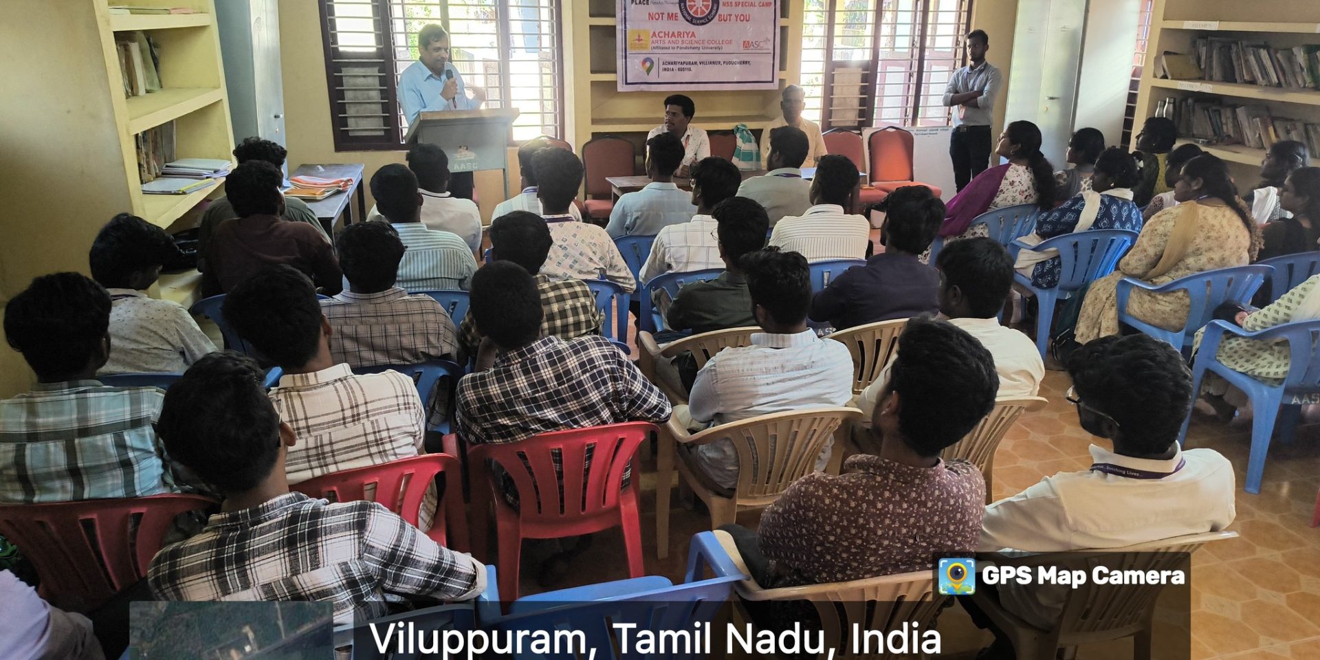 The NSS cell of our college, successfully conducted 7 days Camp from 07 -03-2025 to 08.03.2025 at keezhsathamangalam library. Day 1 (07.03.2025) effectively completed with meditation programme and also campus cleaning with the help and support of the village people, in the morning session and also the volunteers intract with people and the volunteers put their full effort to cleaning the library campus, rooms, cupboard and floor wash cleaning.The welcome address was delivered by DR.K.SILAMBARASAN Asst.Professor of Tamil &NSS PO, this was followed by the Presidential address was given by our Chief Guest , Village Panchayat Leader Mr. Balaraman. In the afternoon session, the meditation programme was conducted by Mr. Sakthi retired LNT and Hearfulness center and also along with Mr. V. Panjatcharam, Assistant Professor, Dept. Of Biotechnology and village Panchayate Head Mr.Balaraman. There are 52 NSS Volunteers actively participated in the second day camp.